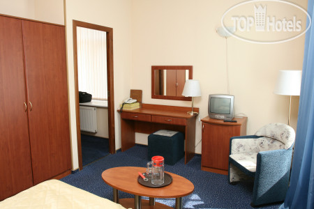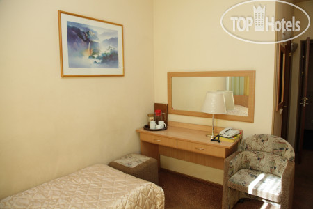 Номер совершенно обычный, чистый. Есть все, что необходимо. У нас с ребенком был шкаф с вешалками и полочками, 2 кровати, стол, стул, пуф, кувшин со стаканами, мини-холодильник, прикроватные тумбочки, телевизор с хорошим выбором каналов. Мебель не новая, но выглядит достойно. Постельное белье чистое.