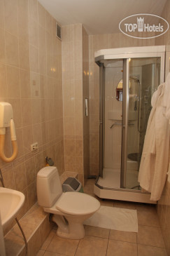 Санузел тоже очень чистый, сантехника работает исправно. Только частенько текла ржавая вода((. Есть полноценная душевая кабина. Был отельный шампунь и мыло в фирменной упаковке (обновляется по мере использования). Сначала расстроились, что в туалете нет змеевика, где можно подсушить белье. Но потом обнаружили теплые батареи под окном и вопрос был решен с сушкой белья.