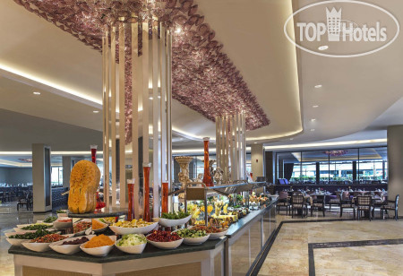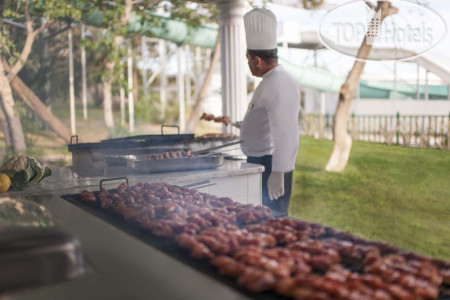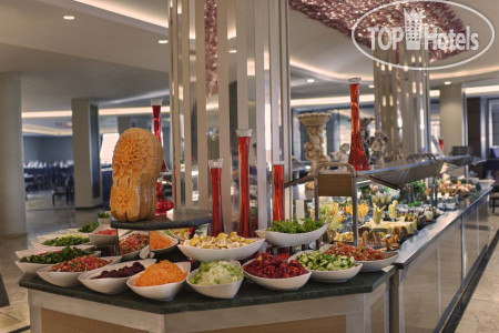 Однообразие. Еда надоела на 3-й день. Голодным не останешься, но ВАУ-эффекта нет. Причем, на завтрак умудрялись омлет с ингредиентами жарить не вкусно: 3 раза брал - не доедал, не вкусно. Раков и гор морепродуктов не было. Красная рыба была 3 раза на ужин (на гриле) и в обед соленая была первую неделю, потом исчезла. Пробовал переключиться на турецкую еду - всё специфично, что-то понравилось, что-то не очень. "А-ля карт" ходили в итальянский. На твердую 4-ку: вкусно, но не более. Большое разнообразие кондитерских изделий - это да, на 5-ку с плюсом. Спиртное наливают местное, можно попросить налить что-то с полок иностранное - нехотя, но наливают. Ещё хочу сказать, что в промежуток с 15.30 до 18.30 покушать, кроме сладкого в лобби, нечего. Первый раз такое вижу в 5* отеле.