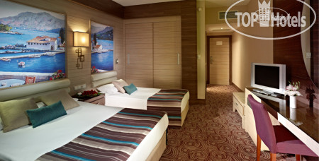 Жили в superior pool view на 4 этаже. Номер на 4-ку. Если бы был палас - было бы намного лучше. А так ламинат, песку с которого никуда деваться - только забивать все возможные щели. Убирали каждый день, в одно и тоже время, в 16.00. Уборка разная, зависит, наверное, от того кто убирает: могли не поменять полотенца или туалетную бумагу забыть добавить (2 раза было). Минибар пополняли каждый день, перед уборкой. за полчаса. В номере, если открыть балкон вечером-ночью было хорошо слышно ночную дискотеку в турецком кафе. При закрытом балконе ничего не слышно, но приходится включать кондиционер, причем достаточно громкий. Если мешала, то ходили потусить на дискач до 2-3 ночи. Было весело.