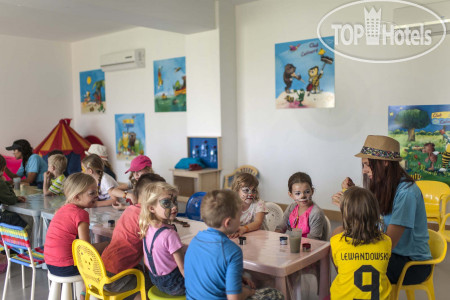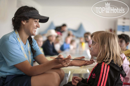 На территории есть большие теннисные корты, можно поиграть в баскетбол (мяч брать у диджея) и маленький теннисный стол на зеленой площадке в тенечке за домиком диджея у бассейнов (ракетки там плохие). В плохую погоду в лобби выкладывали настольные игры.