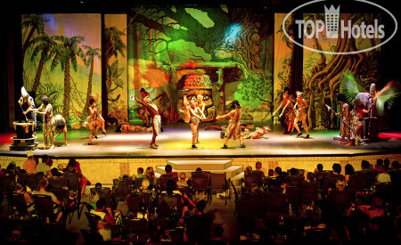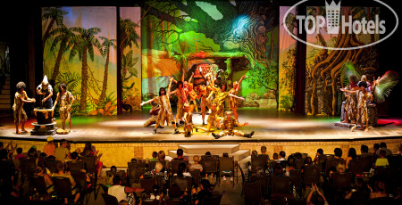 Взрослая анимация проходила возле главного бассейна. Обязательно с утра была водная аэробика, потом в течение дня проводились игры в настольный теннис, дартс, бочча, степ-аэробика, йога. Ну, конечно, детский клуб вызвал у детей восторг. Он состоит из нескольких домиков, в которых проводятся различные активности. Между домиками натянут тент. На территории отеля есть детская площадка, небольшой детский лабиринт и песочница. На Хэллоуин детям устроили квест и потом были тематические угощения. Конечно же, вечером была детская анимация, о потом начиналось представление и для детей, и для взрослых. Представления были одно лучше другого, но больше всего нам понравились акробаты.