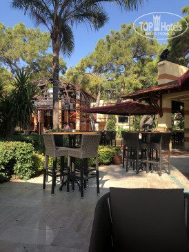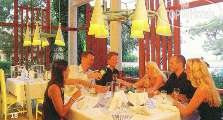 Еда. Есть ресторан у горы(там тусили турки). Ни разу там не была тк мы его открыли в самый последний вечер. Второй у горы но ближе к морю. У основного бара есть паста-бар. Там готовят пасту. Прям при вас. Мне правда показалось что паста (макароны) со вчерашнего дня. Она перекочевали с ужина и чтобы не портилась предлагают с соусом. Ну в принципе ничего страшного. мы там ели. Очень вкусно. Основной ресторан это нечто. Во первых там всегда прохладно хотя кондеров нет. Мы решили что это из-за камня и сада в котором утопает все ну просто все вокруг. Вековые сосны. Пальмы с бананами. Свои мини огород с травами. Кусты цветов. Просто рай. Буфет находится в прохладном помещении. Чего там только нет. Всякий хлеб, диабетический уголок, уголок чисто для турков, фрукты, соки, воды, мясо, рыба, овощи, СЛАДОСТИ, мороженое, морепродукты. Прием пищи происходит в саду. На открытом воздухе. Столики из камня. Скамеечки-стулья из дерева. От солнца предусмотрена крыша. Сидишь ешь Бах еловая иголка по летела:) или шишка упала. Интересно так. Как будто в лесу... Но на море. За все время что я там была я не смогла попробовать всего тк каждый вечер там новая кухня. То турецкий вечер с бараниной. Столы в саду. Ближе к входу в отель. Мы заехали именно в турецкий вечер. Я так в жизни не обжиралась тк все вкусно и много. Рыба-гриль, мясо, всякие овощи, вино правда ограниченно два бутыля на 4 человека. Но я уверена что и этого достаточно. 2008 было. Те три года на тот момент.