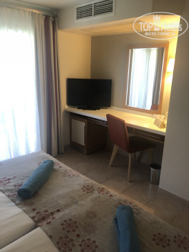 Корпуса двухэтажные. Их много. Стоят компактно. Мы соседей ни видели ни слышали. Пересеклись два раза в разные дни - на завтрак и на ужин одновременно выходили или заходили в номера. Номера добротные. Уютные. Мне почему-то мексику напомнило. Душ с прозрачной дверью:) думаю в семейных номерах такого нет. Шкаф в стене. Одна сторона с полочкам , другая с вешалками. Одно но если у вас много сумок их некуда будет поставить. Максимум два небольших чемодана можно засунуть в шкаф. Телевизор не очень. Громкость ораничена, поэтому громко слушать телек не получится. Кондер включается-выключается если открывать закрывать балконную дверь. Очень удобно. Кровать у нас была кинг сайз такая комфортная. Но подушки мы попросили другие тк эти были очень высокие. Но и те были какие-то неудобные. И мы спали на скрученном валиком одеяле. Спали как младенцы.душ как душ. Мыло не мылилось вообще и мой мч его Попросил заменить на что нам сказали что это мыло без химии. Типа органическое. Мы почитали сосав,да там нет слс. И до нас дошло что у них голубой флаг а значит они радеют за природу. Вот и мыло без химии. Молодцы. Убирали номер отлично. Скрутили нам лебедя, сердце и еще что-то мы не поняли что но было очень мило. Чай оставили в конце. По номеру все. А Кондер просто зверь. На ночь не оставляйте. Отмерзнете.Мы спали с открытой дверью на балкон, открытым окном у душа. Так создавался сквозняк-вентиляция.