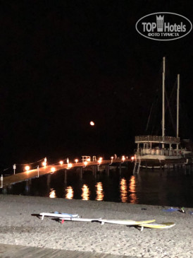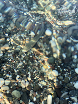 У пляжа отеля на тот момент был голубой флаг. Вода чистейшая.И это значит,кто не любит ощущать присутствие черепах огромных или рыб сюда не надо ехать. Ну, русских там было четыре семьи и их дети все время зависали с маской(смотрели подводный мир). Медуз не было но меня постоянно что-то жалило. И раз на третий пришлось делать укол от аллергии. Сказали это какие-то рыбки. Я вечером перед отьездом решила пощелкать море а совсем недавно пересматривали фотки и мч увидел этих "рыбок" длинные палочки с глазами:) пожалуй это весь негатив. Ну еще голые немцы с обвисшими сиьками и писюнами на балконе и на пляже вызывали отвращение... первые два дня. А потом мы и здороваться начали. Чего стесняться, действительно. :) при детях голые немцы прикрываются:) убежал ребенок опять открыл все свое добро:) Там пляж огромный. Проходит между садом и морем деревянный променад. Места всем хватит. Если не хватило есть места в саду по всей территории. Есть два омывателя. Один ближе к горе. Доугой у басика. Вода в этих омывальнях холодная. А еще есть омыватель на пирсе. В басеке я ни разу не плавала. Сказать о нем нечего. Есть спец зона для голышей на пляже. Она самая комфортная поближе к горе.Там стоит знак - для взрослых:) чай голых:) поймете сразу. Мы утром там отлеживались после часового предзавтракового заплыва. Солнце не печет, справа гора, черепахи плещутся, гора которая сзади без облачка, море, тишина.с пирса можно прыгать. Есть айсберг. До него сначала надо доплыть. Минут 5. Потом залезть. И сегать с него. Одновременно на нем может бвть два-три человека. Силу тренирует отлично. Для ленивых есть ватрушка. До нее нужно тоже сначала доплыть. Она рассчитана на несколько человек. Если там собралась молодеж они на ней прыгают. Есть пантон. Ближе к горе. Там все лежат сидят в общем ленивые.