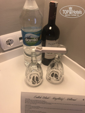 Номер: все аккуратно, чисто. Но достаточно заезжено. Мебель подустала. Кондиционер имеет Центральноевропейской управление. нельзя регулировать температуру в номере. Но что приятно: электричество работает без ключа. Так что можно приходить в охлаждённый номер. В номере есть сейф, банные принадлежности, фен, зонт, холодильник (в котором по только приезду и только вода и вино).