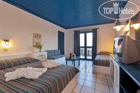 Отели построен в традиционном критском стиле. Надо отметить, что это не единственный раз, когда мы там отдыхали и заказывали разные номера. В прошлом году после значительной ренновации номеров отель стал ещё милее и комфортнее. Свежие, яркие номера с новыми балдахинами никого не способны оставить равнодушными. Если бы что финансово возможность настоятельно рекомендуем взять номер с видом на море наипервейшей линии. Так как отель семейный, то есть и удобные семейные номера. Если не любите быть окупленными детьми- то лучше выбрать соседний отель, в этом же - ваши дети всегда найдут компанию для игр и вам будет «легче» самим отдыхать. На обед открыты 2 заведения: снек бар и главный ресторан. В снек многие приходят прямо в купальниках, он находится прям у бассейна. На берегу есть ещё ресторан, где можно вкусно перекусить и взять напитки и кофе. Коктейли просто супер, на качестве продуктов не экономят. Для входа в море лучше приобрести тапочки. Кстати в октябре почти не бывает волн. Практически все 10 дней отдыха был штиль. Мечтаем побыстрее вернуться, встретить персонал , который уже нам стал родным.