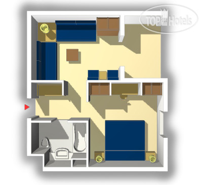 Номер. У нас был двухкомнатный номер с мини кухней и баром (бесплатно – 2 маленькие бутылки вина, сок, вода – один раз при заезде). Высоченные сводчатые потолки. Все видно на фото. Ванная. Бесплатный интернет вай-фай. Убирались хорошо, уборщик как чувствовал, когда именно нам нужно его присутствие, полы мыл, белье, полотенца менял, что нужно, докладывал.