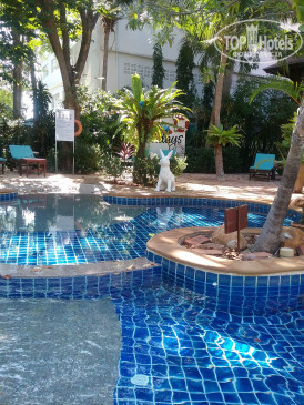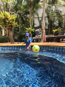 На территории отеля два бассейна: взрослый и детский. Находятся на противоположных сторонах территории. Примерно одинаковые по размеру и глубине. Во взрослом "тихая" зона, в детском можно играть, кричать. Заметив, что мы не делаем разницы между бассейнами и купаемся с ребёнком во взрослом, при этом, естественно, ребёнок не может делать это молча, нас вежливо попросили перейти в детский бассейн. Там даже лучше, место больше и всегда можно найти шезлонги и на солнышке и в тени. Очень часто у бассейна никого нет. Номеров не много, с детьми в Паттайю приезжают в основном русские.