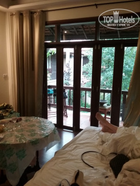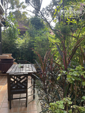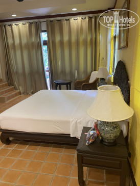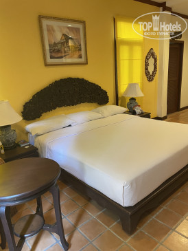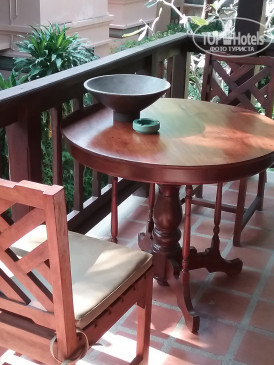 Отель подойдёт тем людям, которые любят и ценят вещи с историей. Номера оборудованы всем необходимым, всё в рабочем состоянии; мебель выполнена в колониальном стиле. Огромная двуспальная кровать и полноценная полуторная с удобными матрасами и подушками. Есть письменный стол. В номере есть сейф, микроволновка, термопод (он же чайник), чашки, ложки (можно попросить ещё посуду), чай и растворимый кофе в пакетиках, небольшой холодильник. Каждый день на человека ставят по 0,5 л питьевой воды. В ванной есть все «мыльно-рыльные» принадлежности, которые пополнялись без напоминаний. Понравилось, что есть достаточно места для хранения вещей: вместительный шкаф с полками, комод и два открытых шкафа с вешалками и верхними полками. Кондиционер и вентилятор работали отлично, кондиционер автоматически не выключался, если мы уходили из номера, т.е. возвращались в прохладу. Были два фумигатора и пластины от москитов к ним. Советую не пренебрегать данным гаджетом и не держать двери/балкон открытыми, т.к.комаров много. Уборка номера нас полностью устроила, убирали номер до 12 часов; мы ежедневно благодарили нашу горничную небольшими чаевыми. Номер представлял собой отдельный домик с террасой рядом со взрослым бассейном; вход от взглядов проходящих людей закрывали плотные заросли кустарника. На террасе находится стол со стульями и сушилка для купальников. К сожалению, посидеть на террасе вечерами не получалось,— уж больно много москитов (спирали от комаров и домашние спреи не помогали).